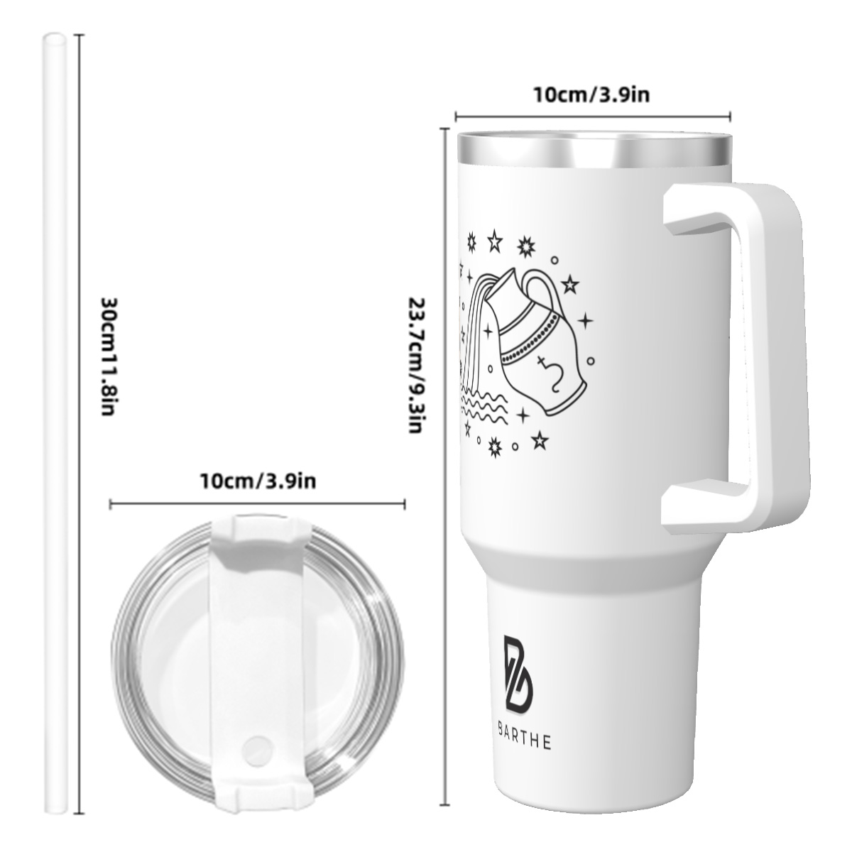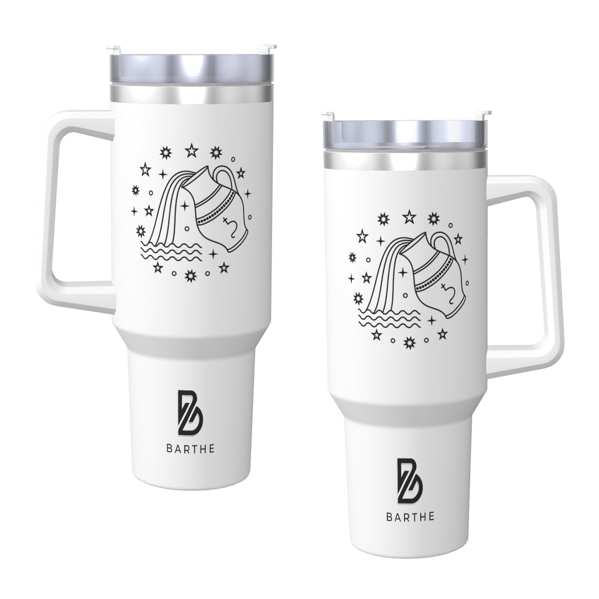 Embrace your innovative spirit with our Aquarius Zodiac Sign 40oz Jug Tumbler! Featuring a striking Aquarius design, this stainless steel tumbler is perfect for astrology lovers and those who embody the uniqueness and creativity of this air sign. With a generous 40oz capacity and double-wall vacuum insulation, it keeps your beverages at the ideal temperature, whether hot or cold. The sturdy handle ensures easy carrying, making it an excellent companion for adventures or relaxing days at home.
