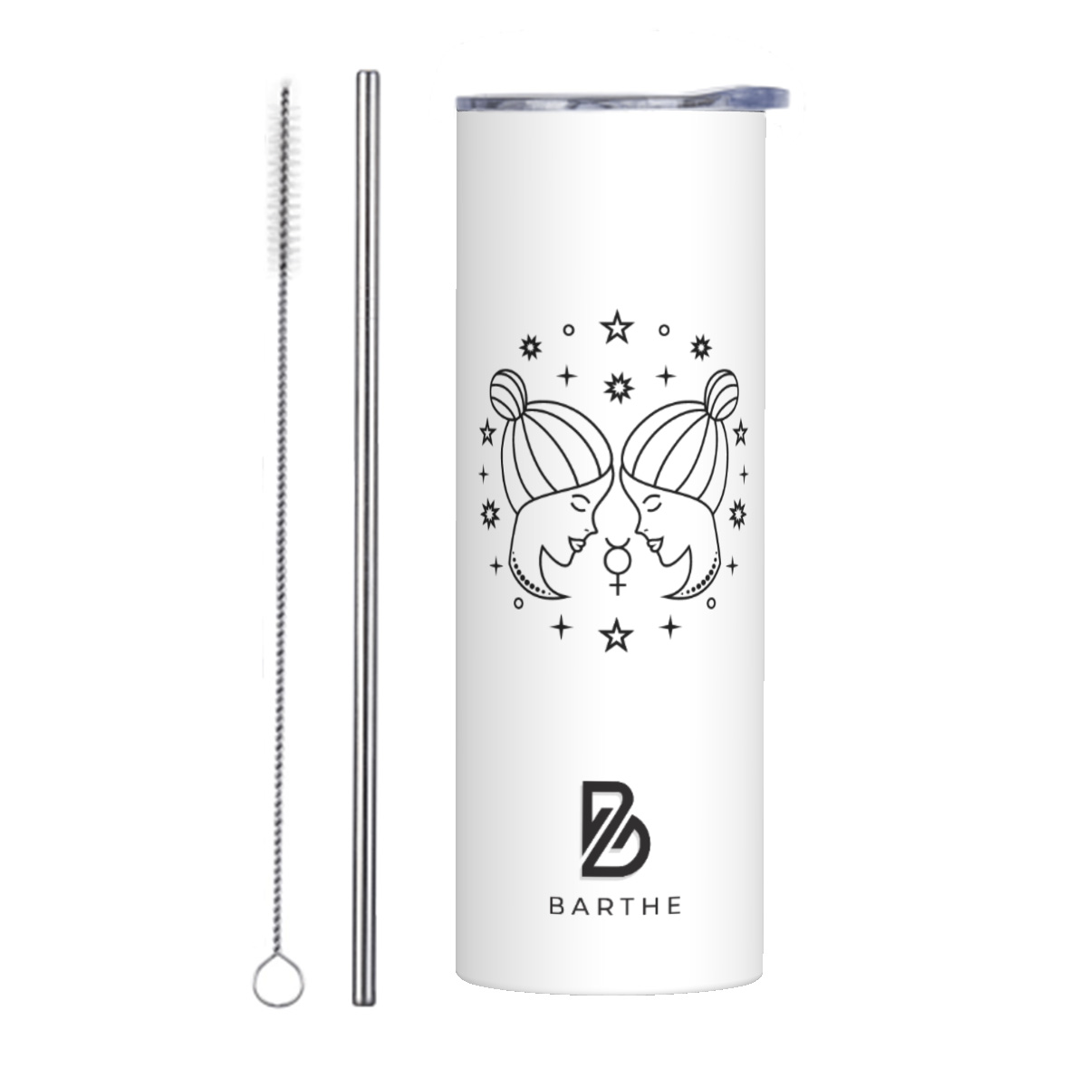 Celebrate duality with our 20 oz Stainless Steel Straight Tumbler, featuring a captivating Gemini constellation design. Perfect for those who embody the curious and adaptable nature of this air sign, this tumbler combines style with practicality. With double-wall vacuum insulation, your beverages will stay hot or cold for hours, making it an essential companion for every adventure.