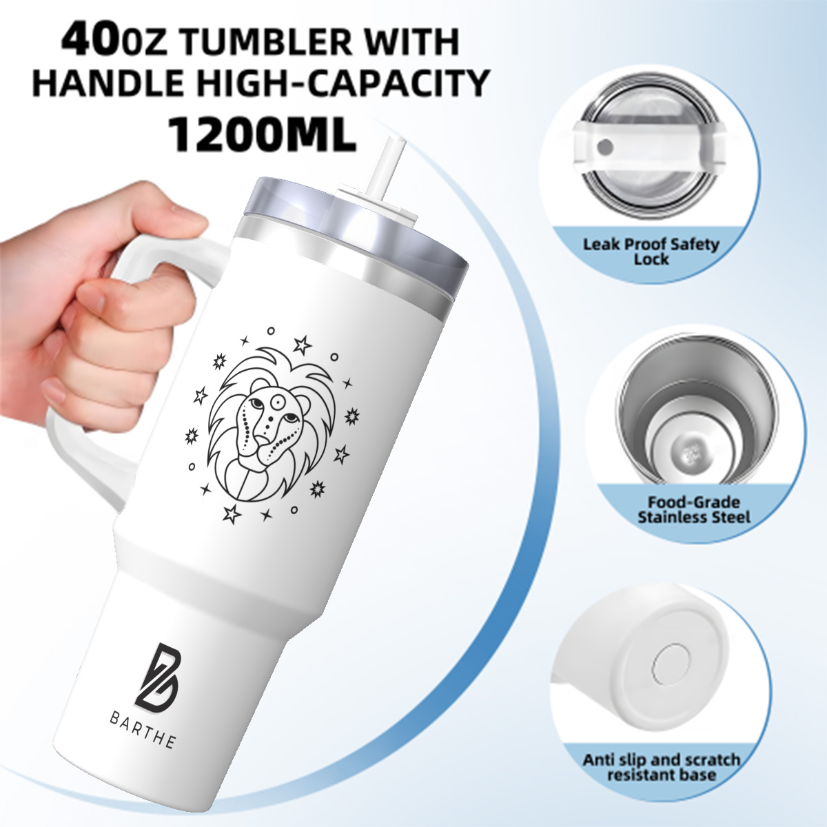 Ignite your inner strength with our Leo Zodiac Sign 40oz Tumbler! Featuring a bold Leo design, this stainless steel tumbler is perfect for astrology enthusiasts and those who embody the confidence and charisma of this fire sign. With a generous 40oz capacity and double-wall vacuum insulation, it keeps your beverages at the ideal temperature, whether hot or cold. The sturdy handle ensures easy carrying, making it an excellent companion for adventures or relaxing days at home.