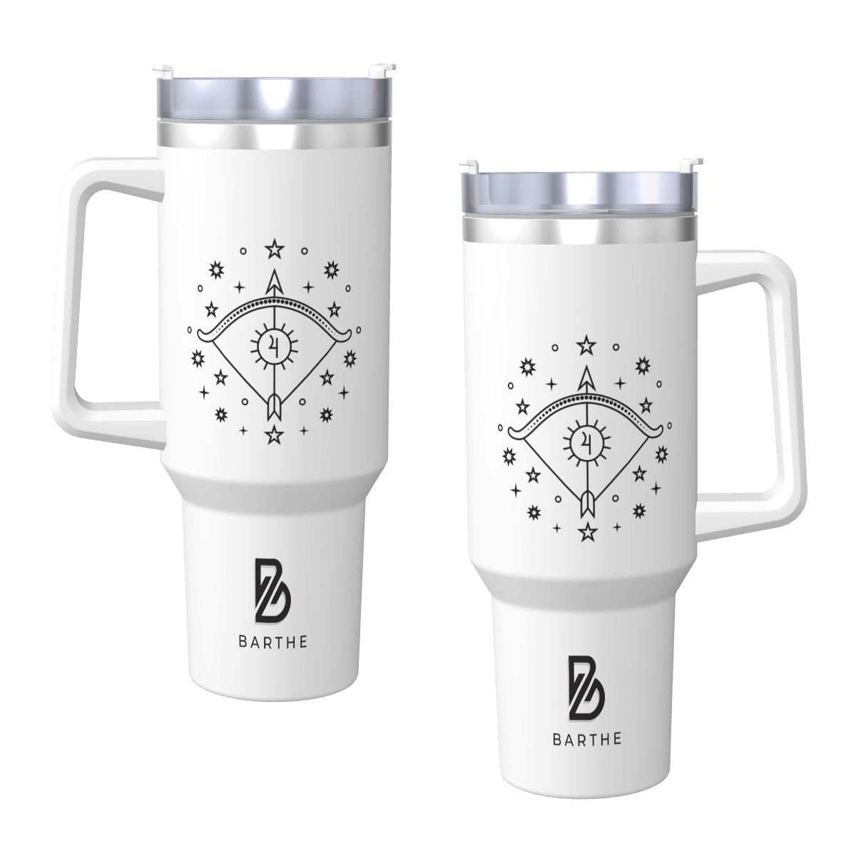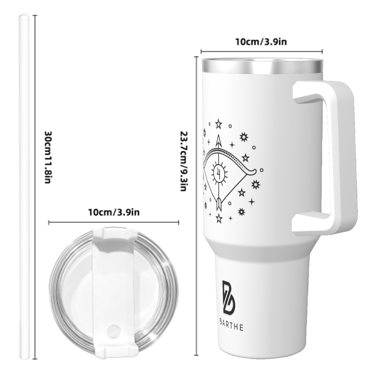 Embrace your adventurous spirit with our Sagittarius Zodiac Sign 40oz Tumbler! Featuring a vibrant Sagittarius design, this stainless steel tumbler is perfect for astrology lovers and those who embody the free-spirited nature of this fire sign. With a generous 40oz capacity and double-wall vacuum insulation, it keeps your beverages at the perfect temperature, whether you prefer them hot or cold. The sturdy handle ensures easy carrying, making it an ideal companion for your explorations or relaxing days at home.