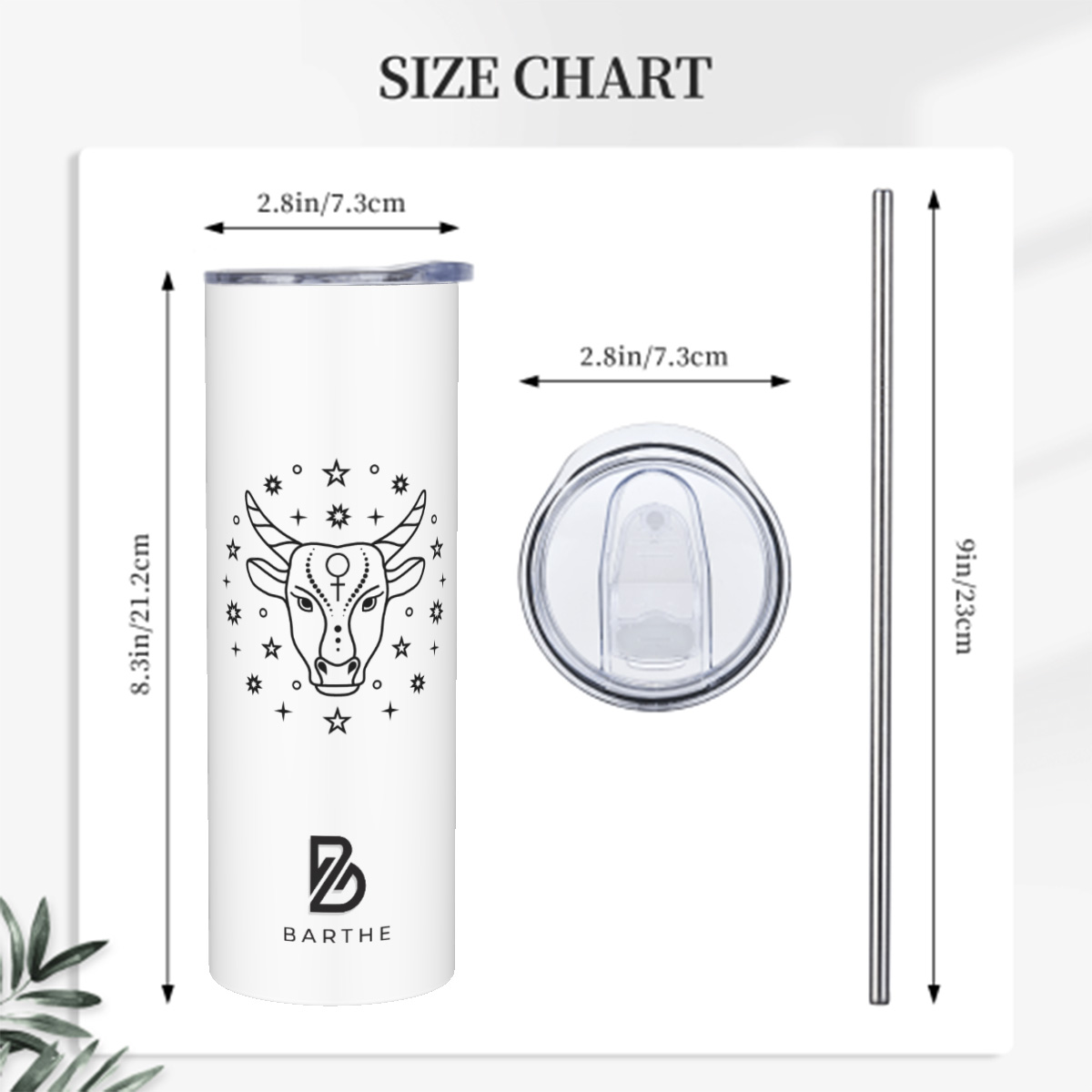 Embrace the strength and elegance of the Taurus with our 20 oz Stainless Steel Straight Tumbler. Featuring a beautifully crafted Taurus constellation design, this tumbler is perfect for those who embody the steadfast and reliable nature of this earth sign. With double-wall vacuum insulation, your beverages will stay hot or cold for hours, making it an essential accessory for any setting.