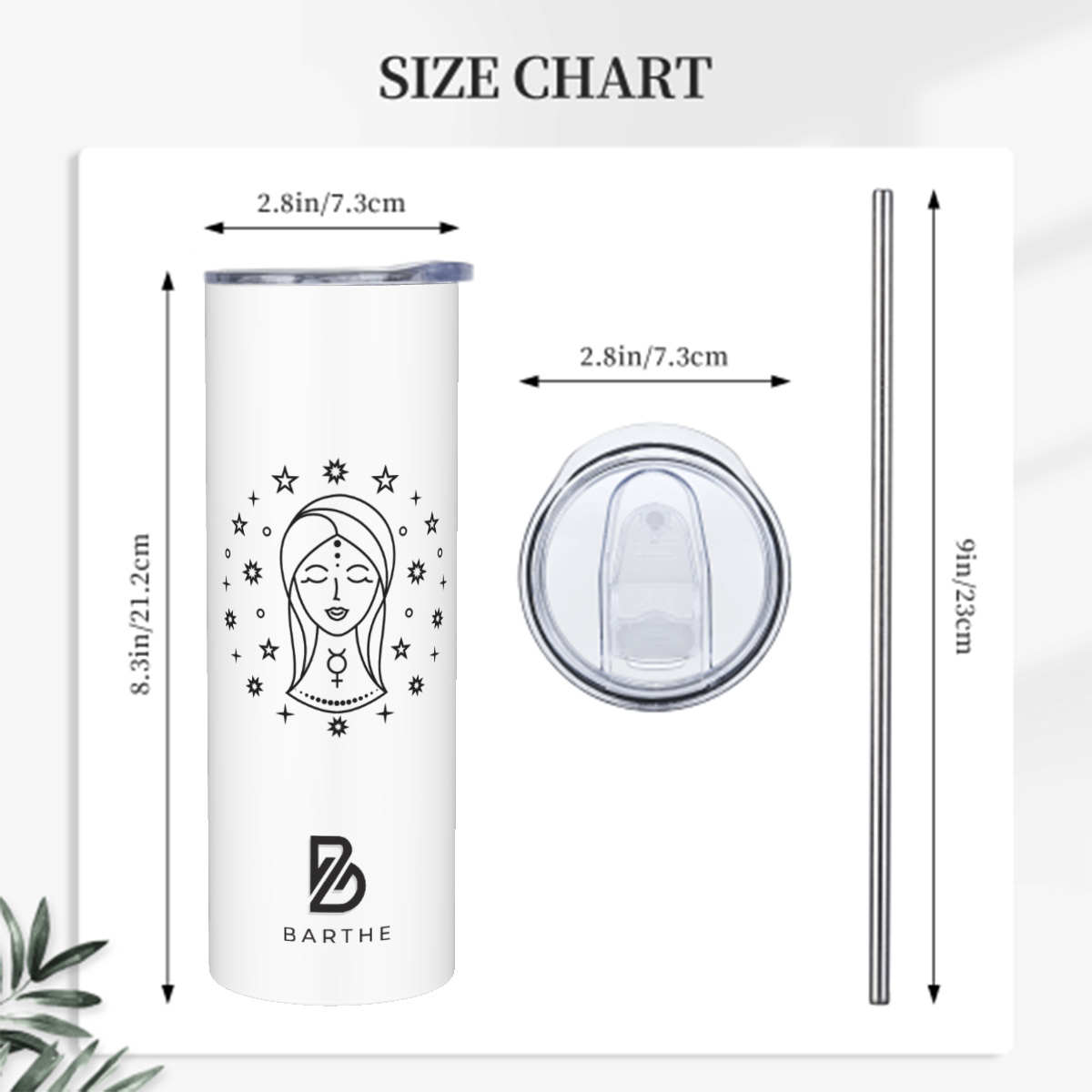 Dive into the world of astrology with our Virgo Zodiac Sign 20 OZ Tumbler. Featuring a beautifully detailed Virgo constellation design, this stainless steel tumbler is perfect for those who embody the traits of this earth sign—practical, meticulous, and reliable. With double-wall vacuum insulation, your beverages stay hot or cold for hours, making it an essential companion for any occasion.